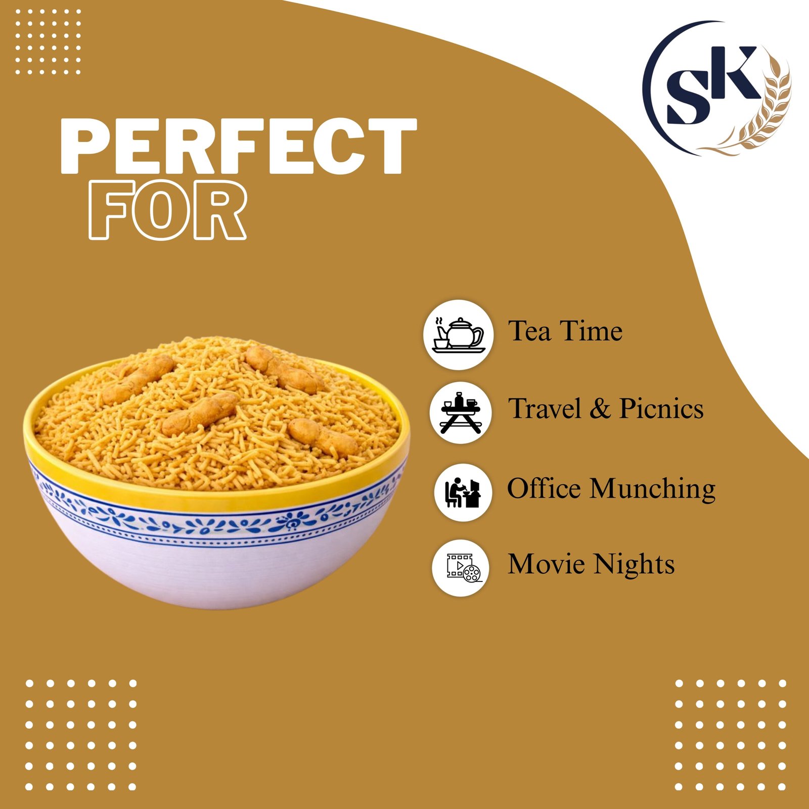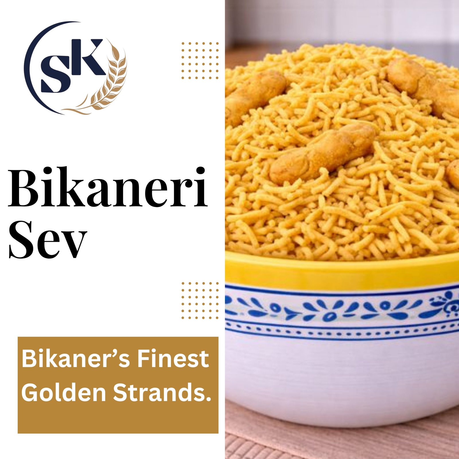 Secret taste! Premium Indian snack, spicy-tangy-tasty and unforgettable. Bikaneri sev is one of India’s all-time favourite snacks. Generally known as bhujia or bhujia sev, this crispy snack is served as an accompaniment to any and every Indian dish. It is light yellow.